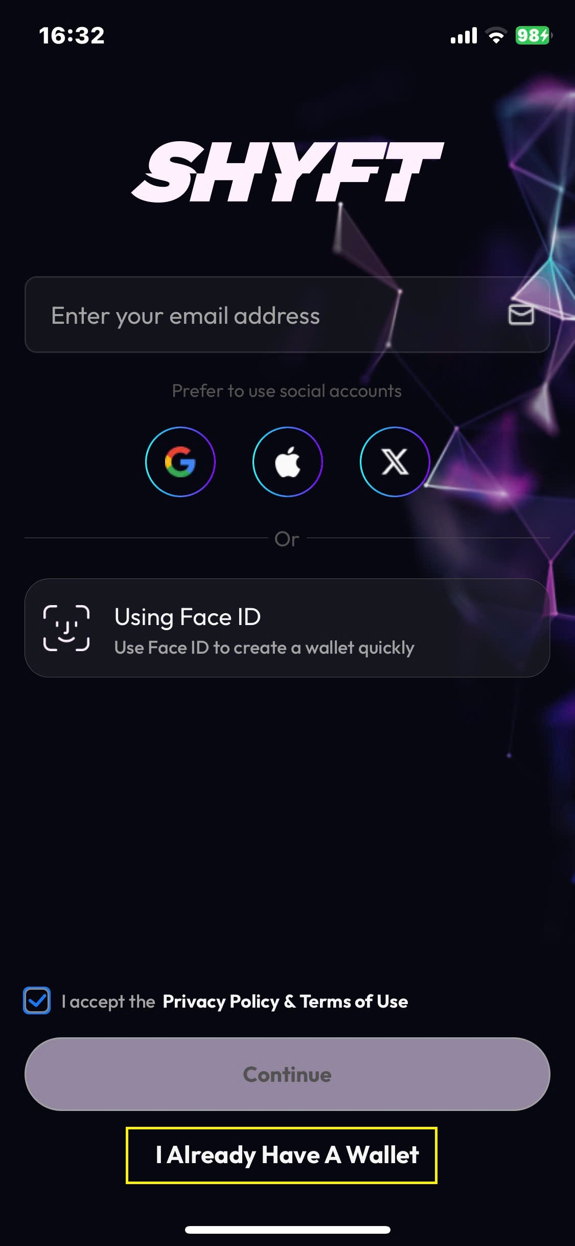 You may already have a wallet secured by a 12 words seed phrase and want to use it. Easy-peasy, just import it in Shyft and it's ready to go.